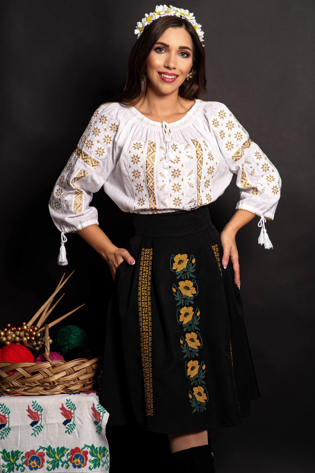 Redescoperă farmecul autentic al portului românesc prin colecția noastră de fuste tradiționale, create să celebreze moștenirea culturală cu un stil contemporan. Fiecare piesă este o prelucrare artistică a motivelor tradiționale, de la broderii cu simboluri străvechi precum rombul, la combinații cromatice îndrăznețe și inserții de dantelă rafinată. Indiferent dacă alegi o fustă neagră în clos, una...