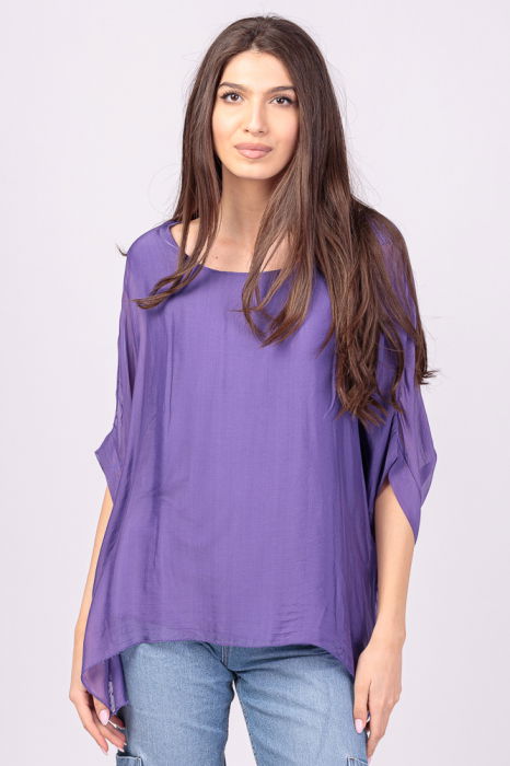Bluza mov din matase si vascoza cu funda, de la Shopika. Comanda acum si bucura-te de eleganta si confort!