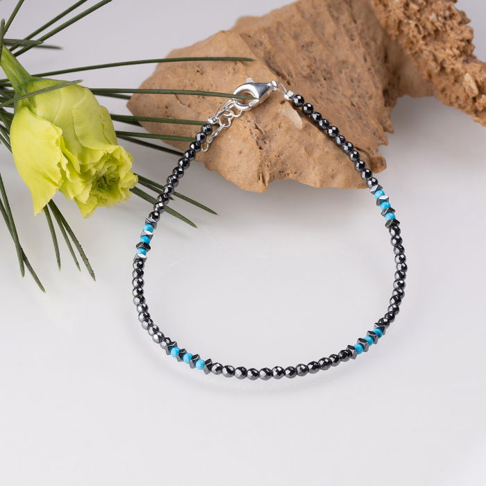 Brățară handmade Maia colt cu hematit și turcoaz. Un design elegant și rafinat. Comandă acum și adaugă un strop de stil ținutelor tale!