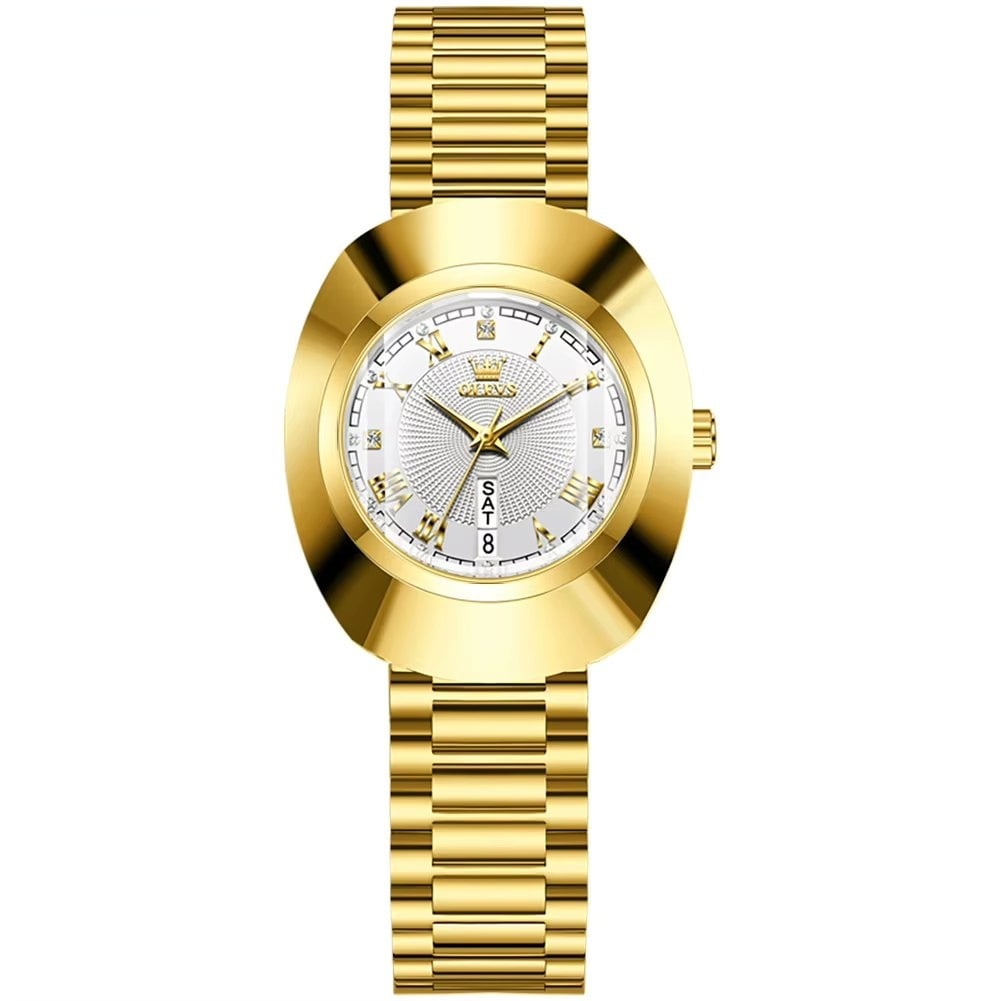 Descoperă ceasul de damă Olevs CS1917, cu brățară din oțel inoxidabil auriu și cadran alb. Eleganță pe încheietura ta. Comandă acum!