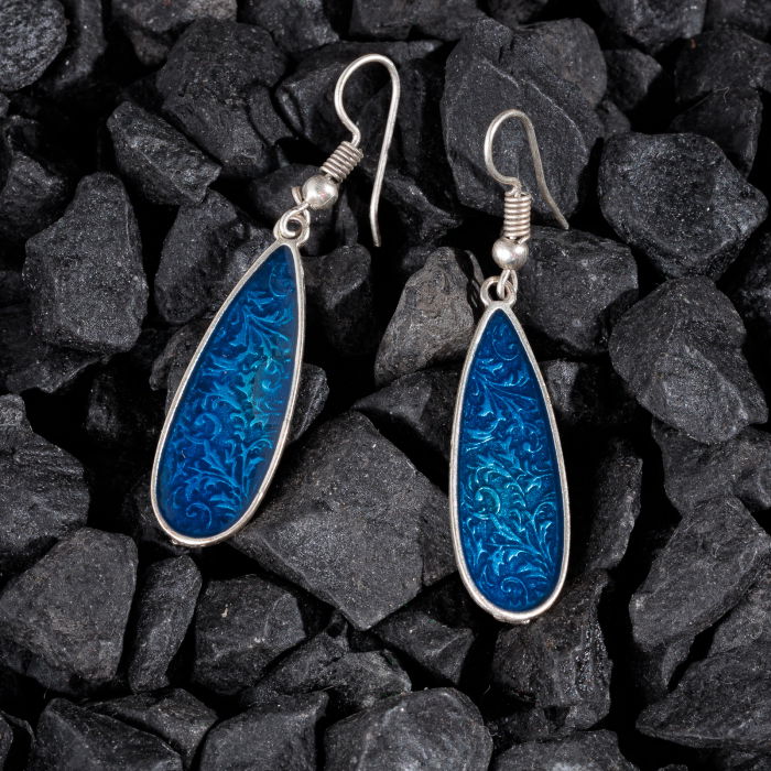 Cercei picatura din zamac cu design gravat și emailat albastru. Hipoalergenici și eleganți. Comandă acum de la Shopika!