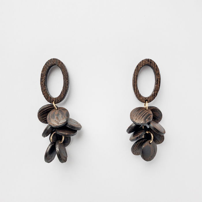 Descoperă eleganța naturală prin acești cercei handmade din lemn, perfect combinați între design oval și forma stilizată de ciorchine. O piesă unică care adaugă rafinament oricărei ținute.