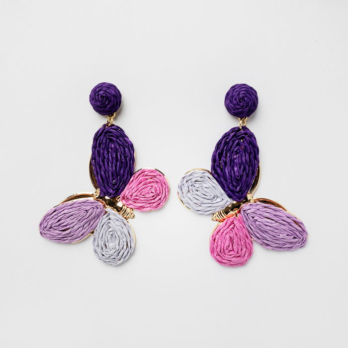 Cercei fluture aurii cu aripi mov și lila de la Shopika. Un accesoriu unicat ce completează orice ținută. Comandă acum!