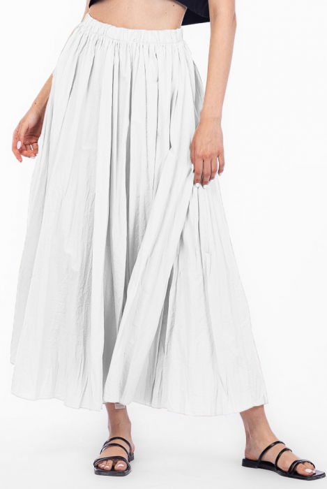 Descopera fusta lunga creponata alba de la Shopika. Confortabil si elegant, perfect pentru orice ocazie. Comanda acum!