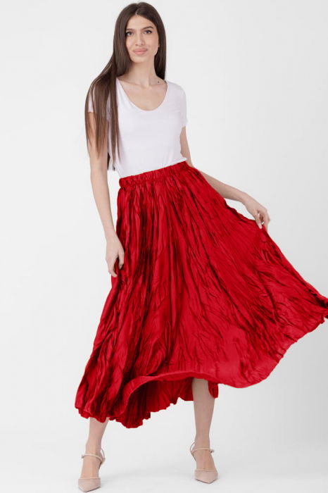 Adaugă în garderoba ta o piesă de rezistență care nu se demodează niciodată. Comandă acum fusta creponată roșie de la Shopika și bucură-te de admirația celor din jur!