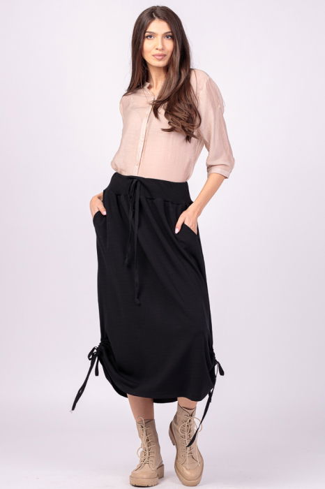 Descopera fusta lunga neagra Pierino din bumbac cu sireturi laterale. Comanda acum pentru un look modern si confortabil!