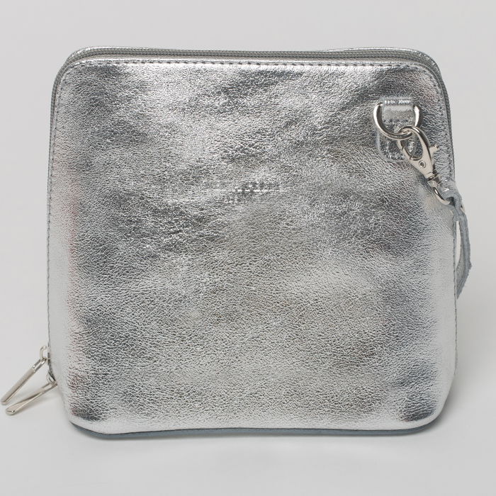 Geanta crossbody argintie Shopika, din piele naturală. Design elegant și practic. Comandă acum și beneficiezi de livrare rapidă!