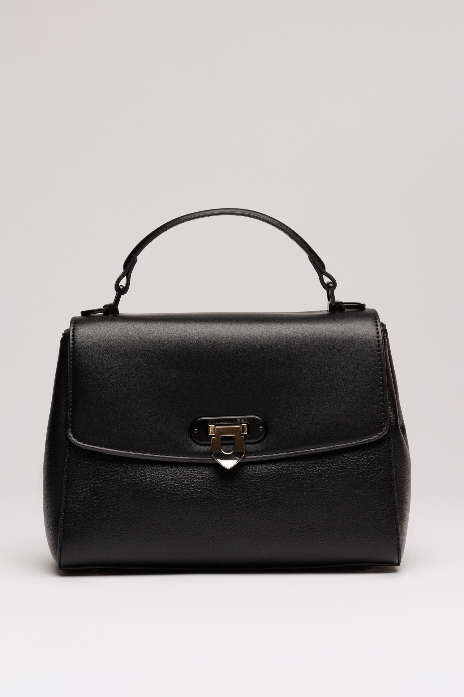 Geanta neagra din piele ecologica cu model structurat. Perfecta pentru birou si intalniri de afaceri. Comanda acum!