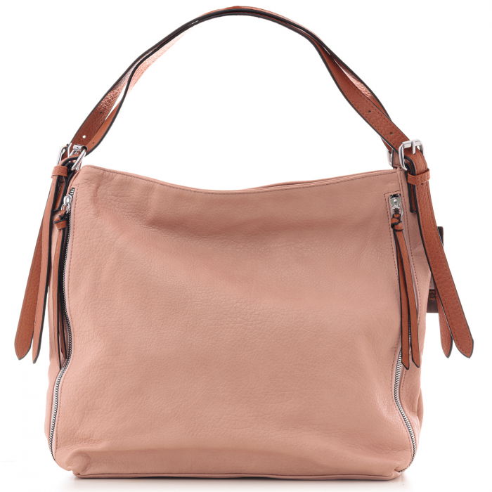 Geanta roz prăfuit Shopika din piele ecologică cu 2 fermoare. Compartimente multiple. Cumpără acum cu livrare rapidă!