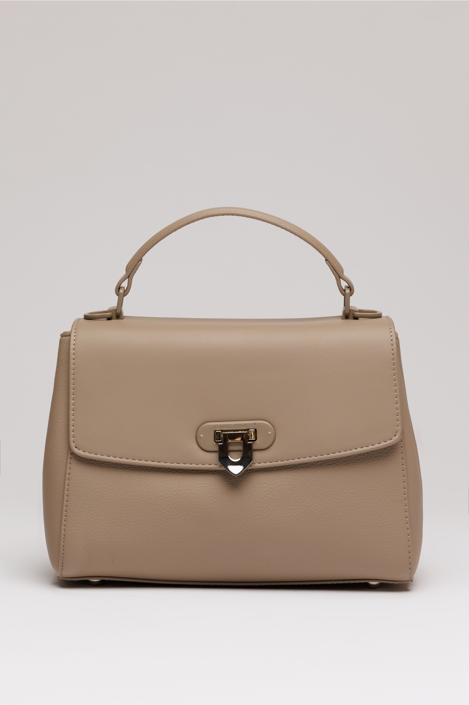 Geantă office elegantă din piele ecologică taupe. Design structurat, practică pentru birou. Comandă acum!