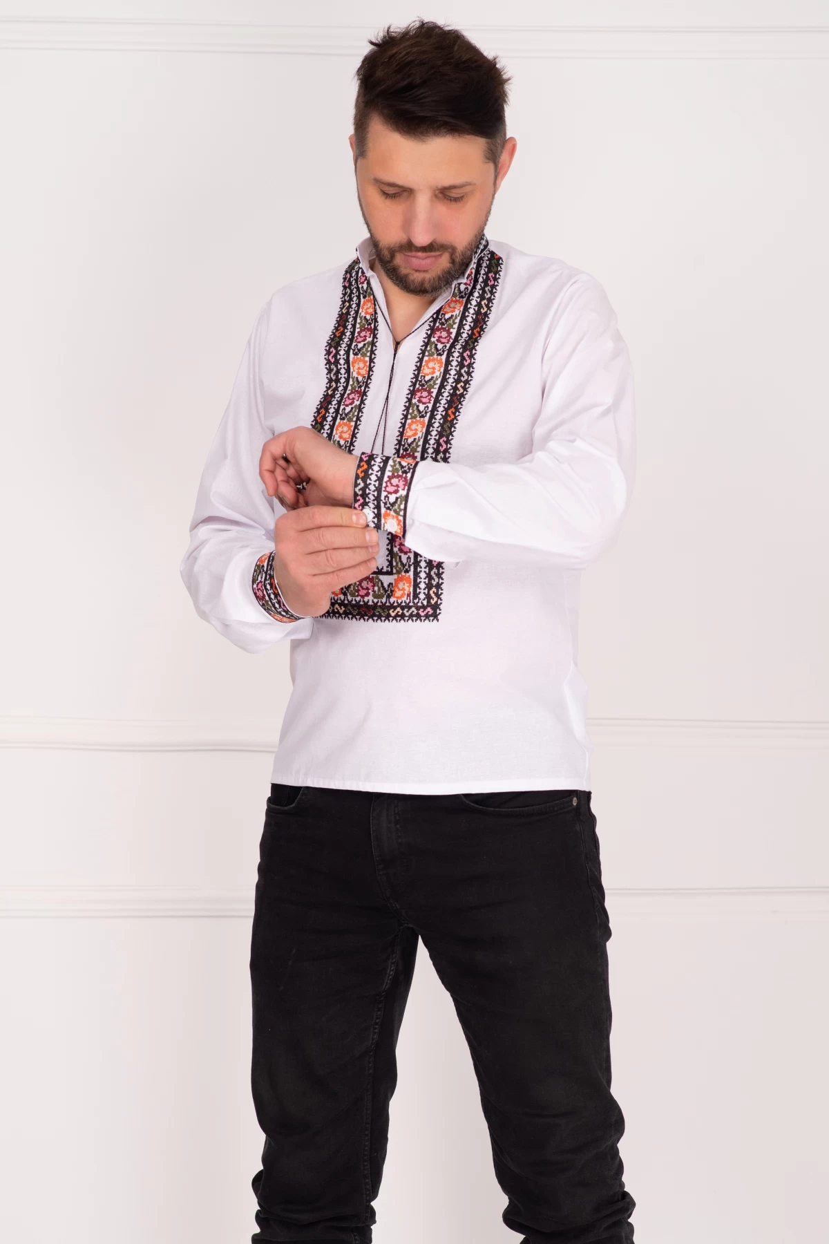 Descoperă ia bărbătească din bumbac 100% cu motive populare autentice. Comandă acum piesa tradițională perfectă pentru garderoba ta!