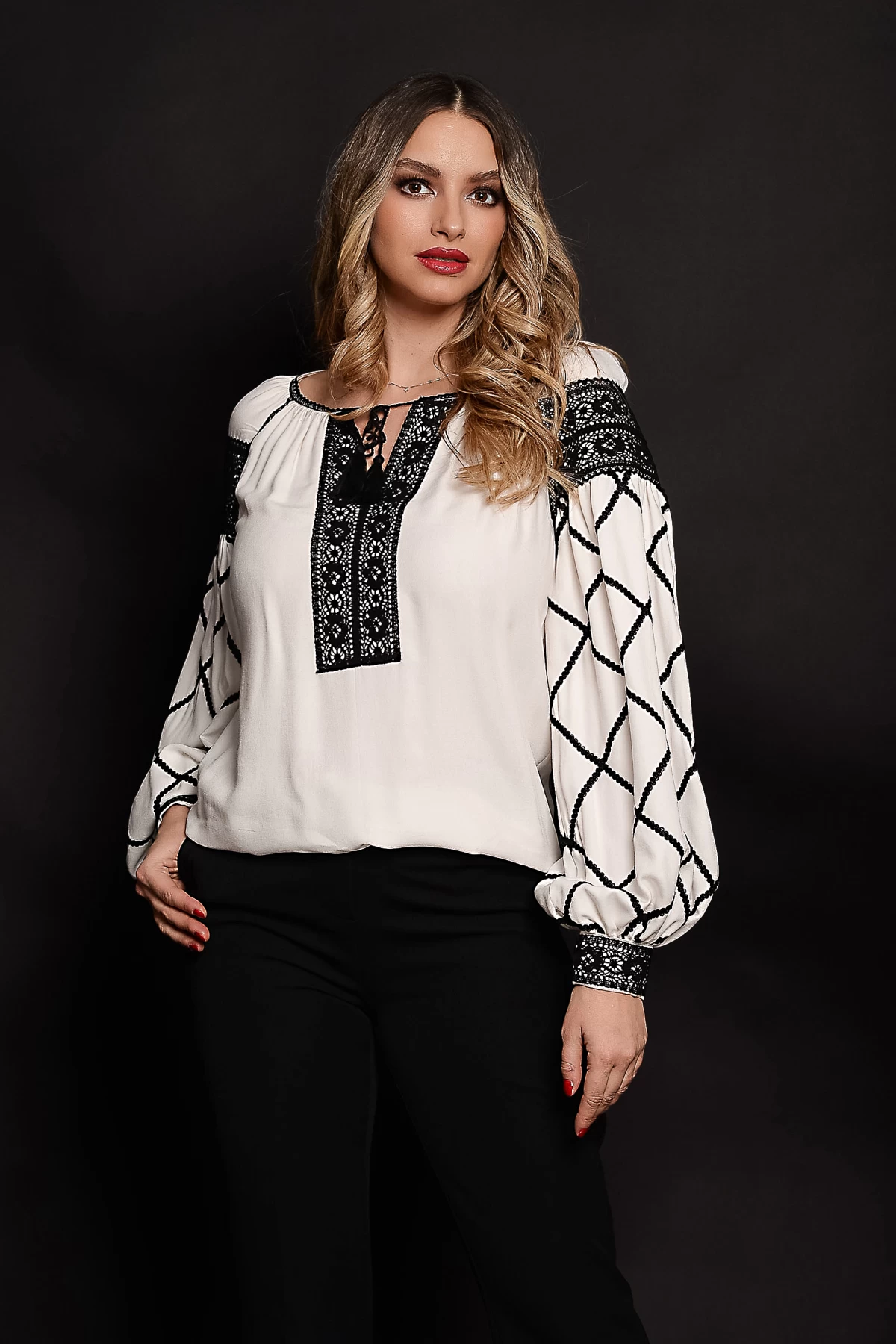 Descopera ia traditionala alba cu broderie neagra de la Effect. Un design elegant ce redescopera traditia romaneasca. Comanda acum!