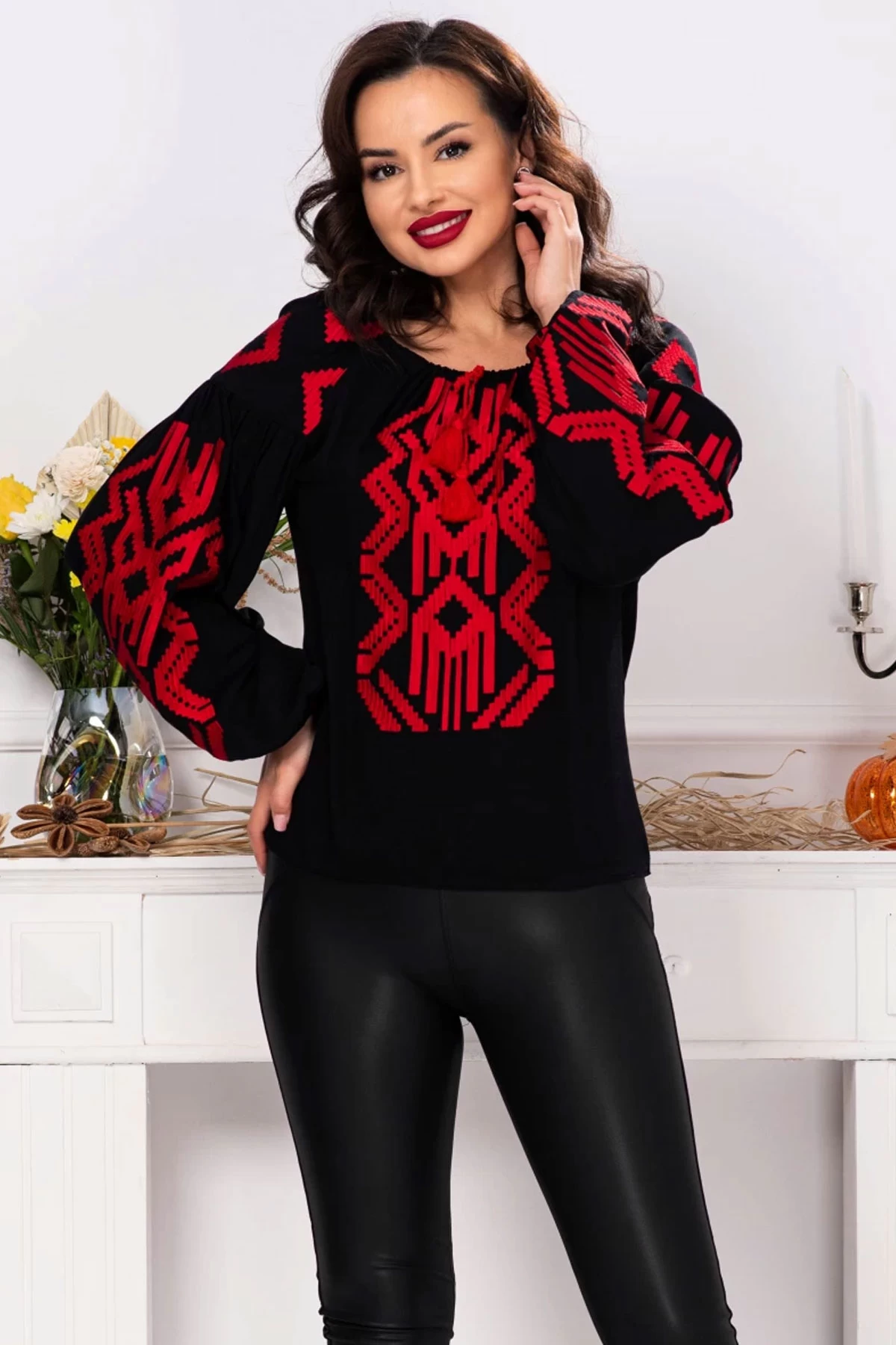 Ie neagra Effect cu broderie rosie, un amestec de traditie si eleganta. Fabricat in Romania. Comanda acum!