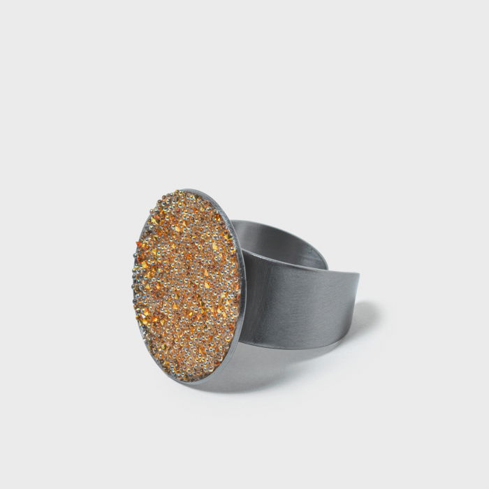 Descoperă inelul reglabil cu cristale și finisaj gun metal de la Katerina Vassou. Design armonios pentru un look modern. Comandă acum!