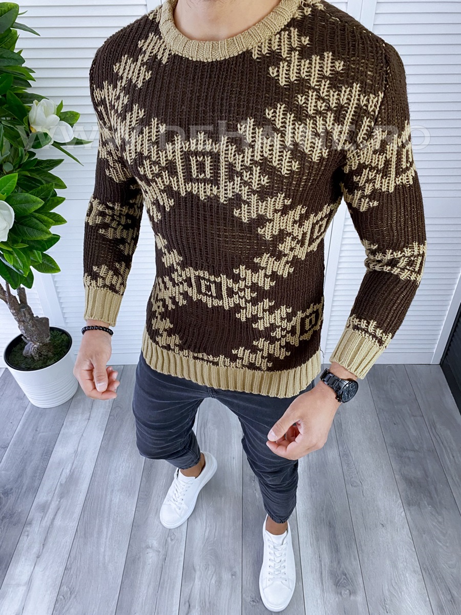 Descopera puloverul barbatesc slim fit maro, perfect pentru birou sau tinute casual. Comanda acum la pret avantajos!