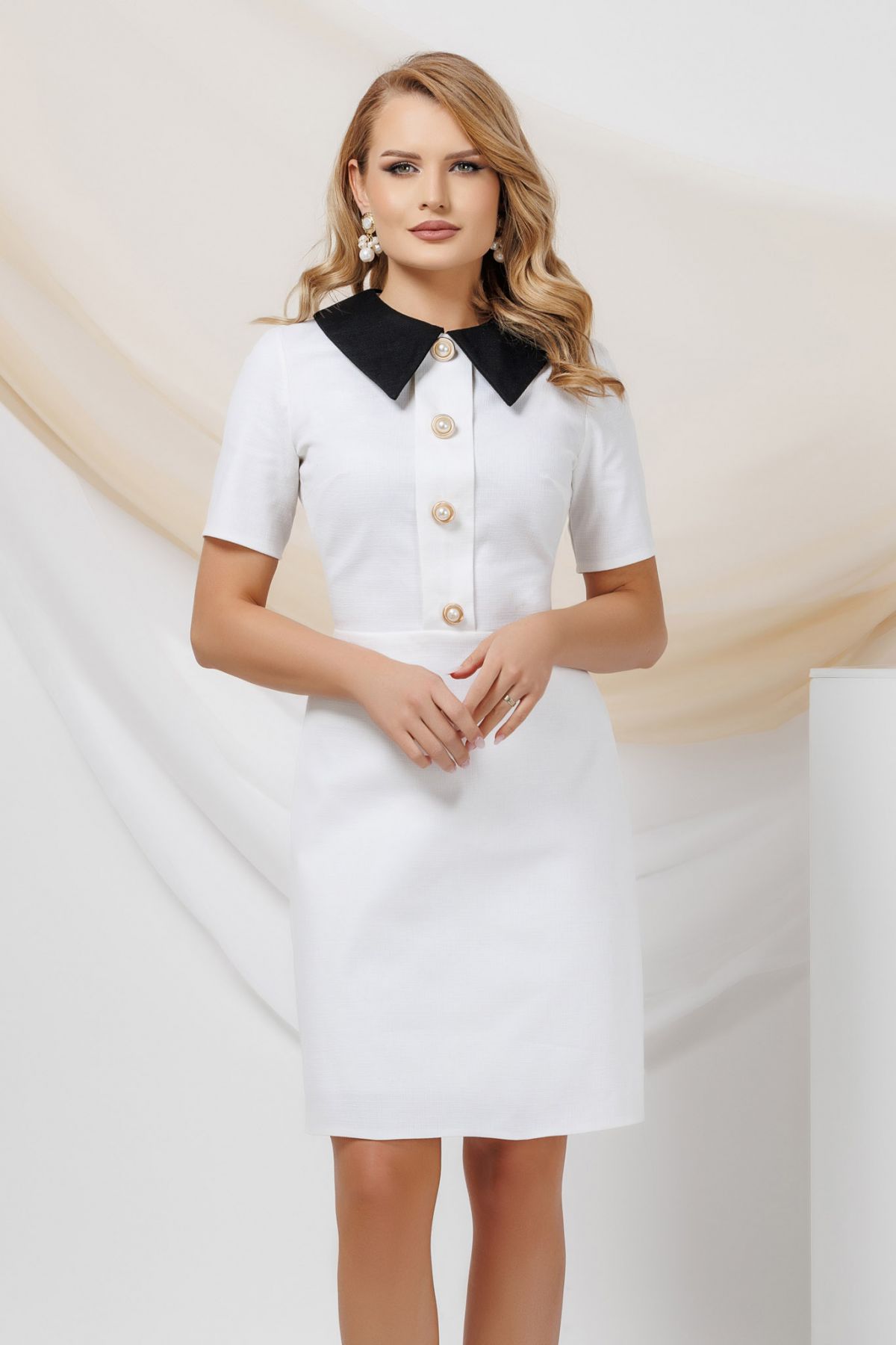 Rochie office elegantă din bumbac texturat Pretty Girl. Comodă și stilată pentru zilele de la birou. Comandă acum!