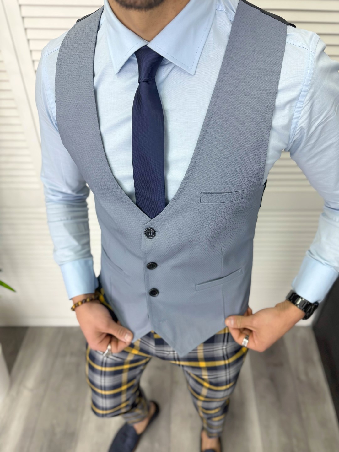 Descoperă vesta elegantă pentru bărbați, confecționată din bumbac de înaltă calitate, ce redefinește stilul tău personal. Această piesă versatilă se integrează perfect în ținutele casual și office, oferindu-ți un aspect rafinat și modern.